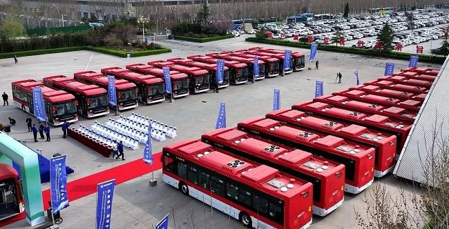 (山東重工旗下中通客車出口智利的895輛純電動(dòng)客車訂單的首批車輛,在山東聊城隆重發(fā)車。)